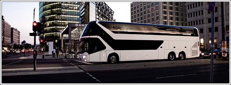 Man nehme einen handelsüblichen, nagelneuen Neoplan Skyliner Doppelstockbus, der knapp 14 Meter lang und 4 Meter hoch ist.