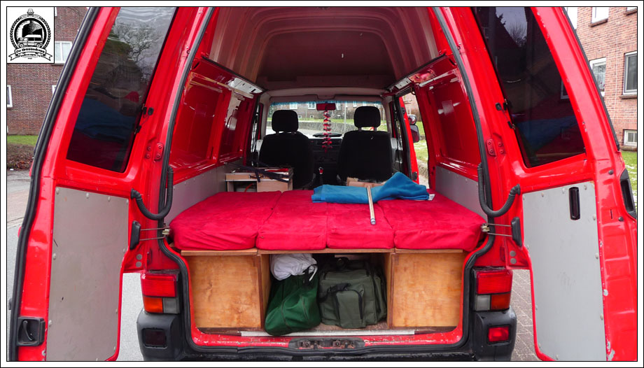 . . .and my friends Wolfgang and Armin implement it. And here is it – my red van „De Brööömkopp“ (his name is northgerman-slang).